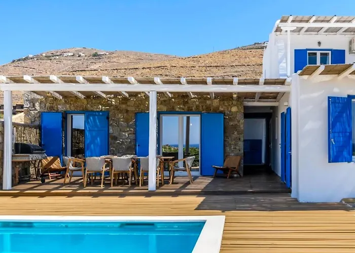 Η βίλα Emerald Bay 4Br With Pool By Lia Beach Καλαφάτη διαθέτει βεράντα και απέχει 3 χλμ. από το Οικολογικό Αγρόκτημα Μυκόνου Βίωμα.